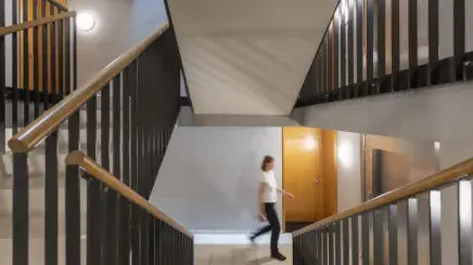 Stairwell lighting that is more convenient for tenants and saves a lot of energy. In the Steinacker residential complex in Zurich, the stairwell lighting was still operated by push-button switches, which meant that the lights were often left on even though they were not needed. In addition, the old luminaires heated up the stairwell due to the long burning hours. Now, just 80% of the maximum light output of the newly installed R-series luminaires is sufficient to illuminate the floors as soon as people are present. In addition, the background lighting creates a great atmosphere and provides more security when dusk falls.