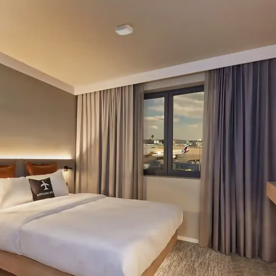 The Moxy Hotel is located in the immediate vicinity of Cologne Airport. Its pentagonal shape and avant-garde façade are inspired by the design language of the terminal, which was designed in the 1970s. The hotel is located on a former airport car park. It has a gross floor area of 10,000 square metres with 250 rooms, a lobby bar, a restaurant, five conference rooms and a fitness area. The top floor has large glass panels offering a panoramic view of the grounds and the airport apron. The hotel, which belongs to the Marriott Group, uses innovative sensor technology from STEINEL in its rooms.