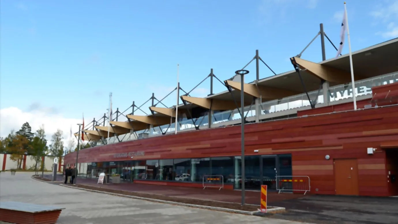 The Myresjöhus Arena is a football-only stadium with a capacity of 12,000 spectators (10,000 seats), which is completely covered. The stadium also has 144 toilets. Steinel sensors have been installed in and around the entire arena.