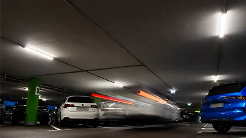 The lights in the car park are installed using 5-pole through-wiring due to the length of the building. A control line, as with the previous DALI installation, is not necessary. With the help of the free STEINEL Connect app, the lights are connected to each other wirelessly via Bluetooth Mesh.