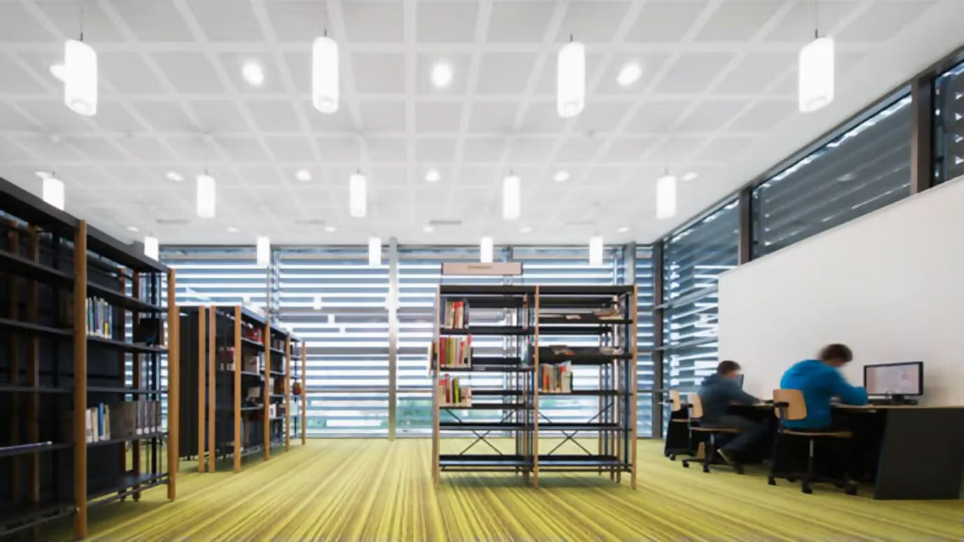 Intelligent light for intelligent minds: STEINEL sensors control the library's entire lighting system depending on how it is used and the amount of daylight.