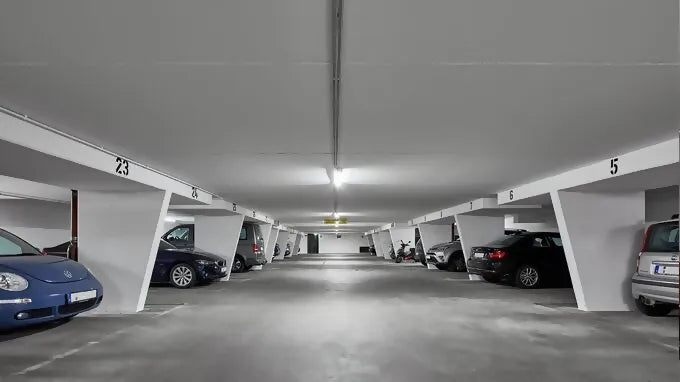 The outdated lighting in the underground car park has now been replaced by RS PRO Connect 5100 LED sensor-switched diffuser luminaires. A control system that is tailored to the local conditions ensures that light is only ever switched on where users are present and light is needed. Individually adjustable time intervals ensure that the light dims to a lower level when it detects that the area is no longer being used. The light switches off completely when no one is in the area for a longer period of time. This lighting solution can reduce total operating costs by 94.4%.